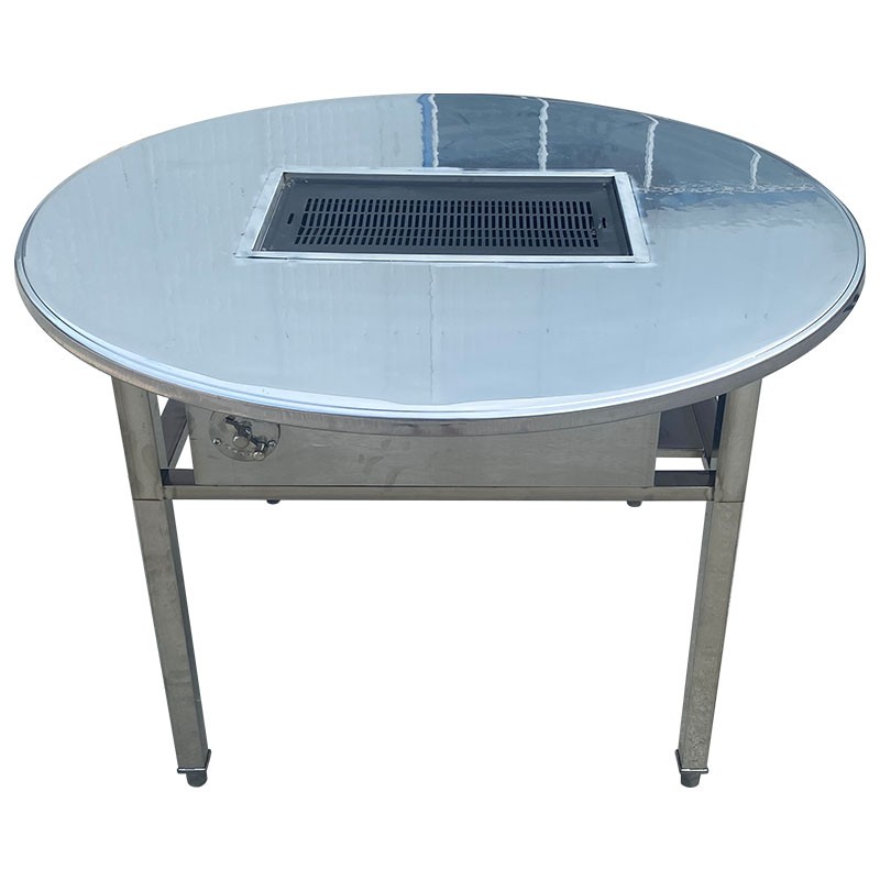• 燒烤桌商用戶外庭院烤肉無煙不銹鋼木炭圓桌擺攤室內家用羊腿桌子